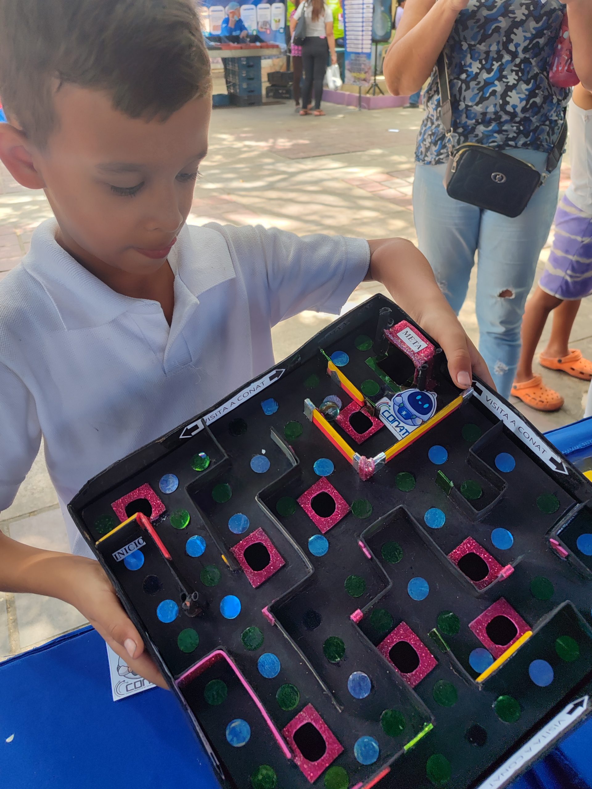 El Laberinto Conati: Una estación dedicada a la agilidad mental donde los niños pusieron a prueba su capacidad de resolución de problemas y planificación estratégica para alcanzar metas evadiendo obstáculos.
