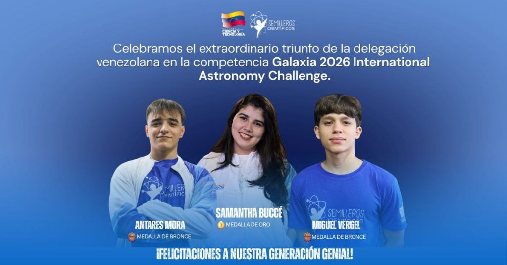 Una delegación de jóvenes venezolanos del Programa Nacional Semilleros Científicos conquistaron medallas de oro y bronce en la International Astronomy Challenge Galaxia 2026, realizada en Indonesia en formato virtual.