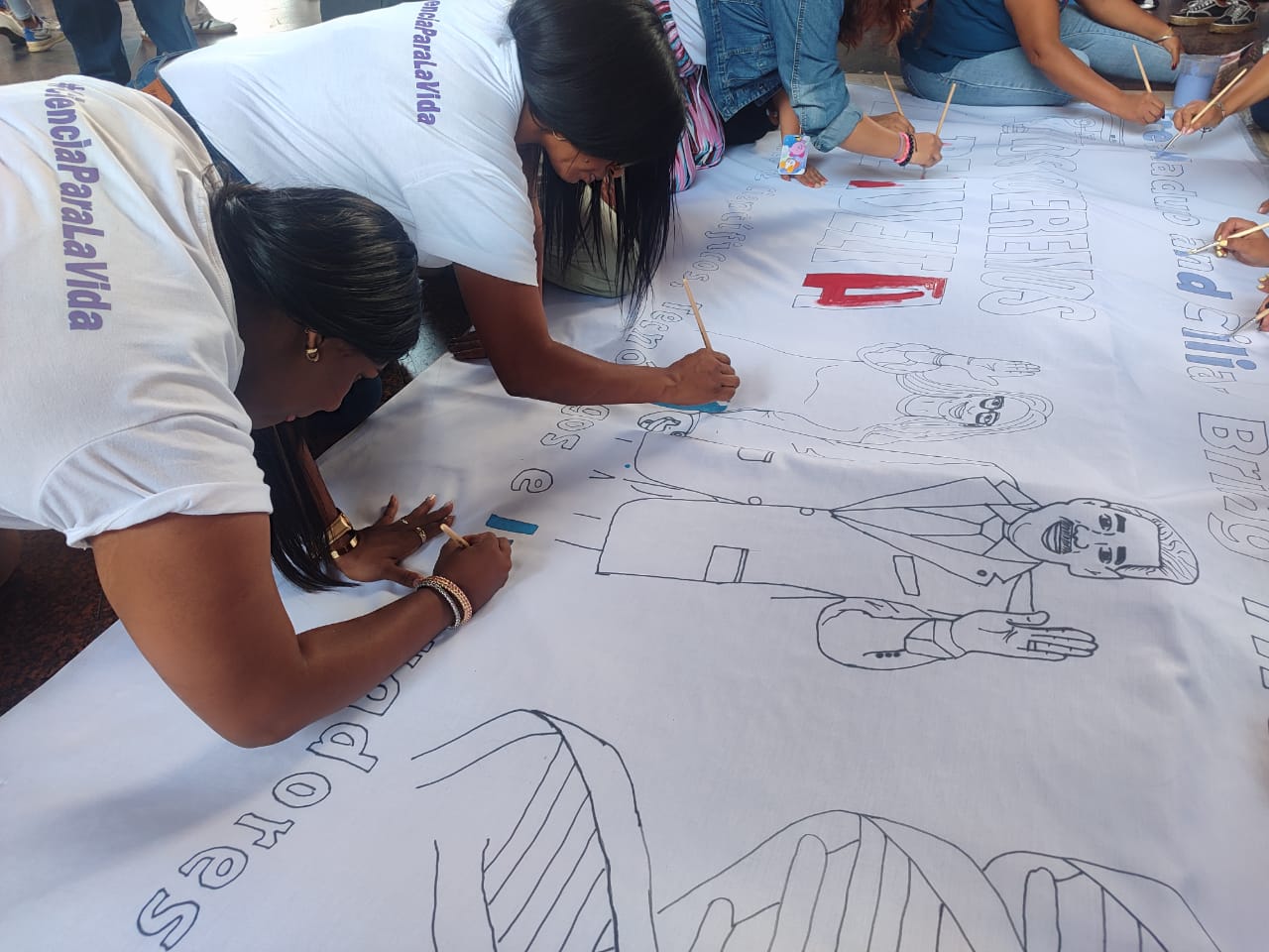 Este martes, desde la Plaza de los Pueblos y los Saberes del Mincyt, las mujeres de las Ciencias y las Tecnologías a través del arte se pronunciaron, en rechazo al secuestro perpetrado por los Estados Unidos contra el Presidente Nicolás Maduro y la primera dama, Cilia Flores.